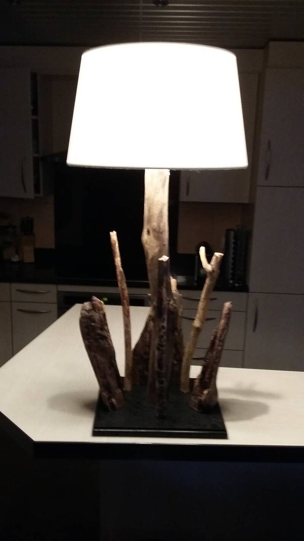 Lampes en bois floté, bois récupérer sur la plage d'auvernier