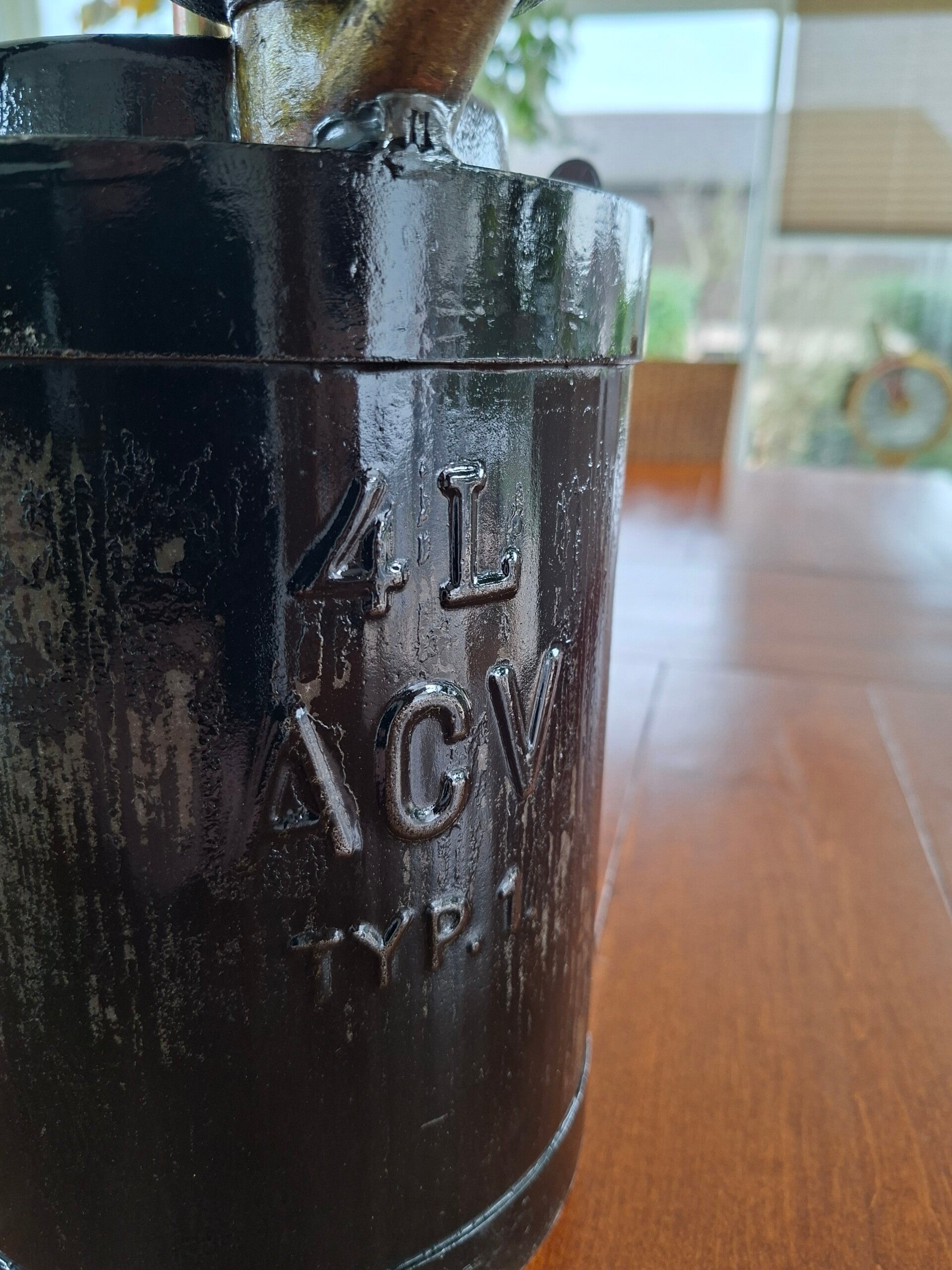 - Année de construction : Ce type de bidon en tôle épaisse avec bouchon en laiton massif a été produit principalement entre les années 1910 et 1940.